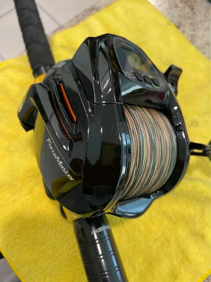 Shimano ForceMaster 900 mounted on brand new Xcaliber bent butt rods with roller guides full braid.